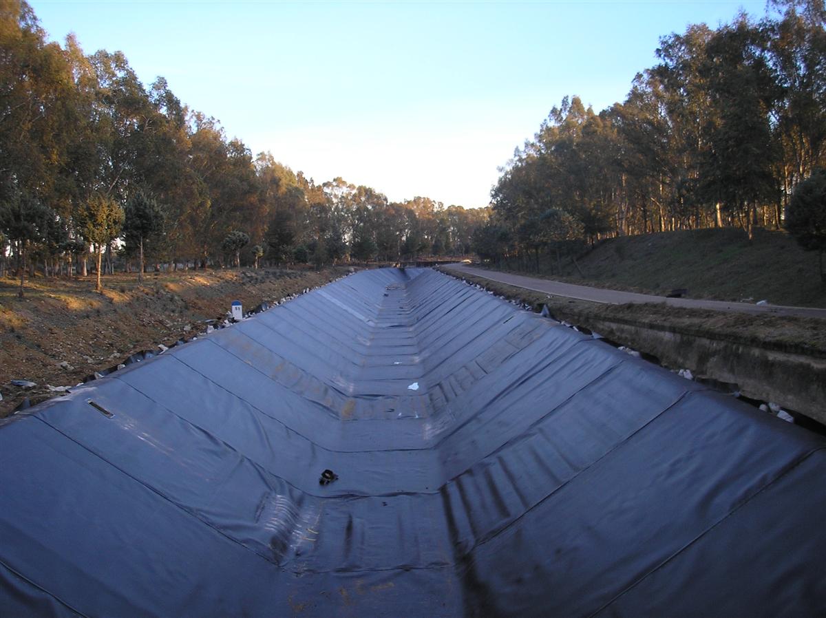 Contención segura del agua en canalizaciones mediante revestimiento con geomembrana HDPE.